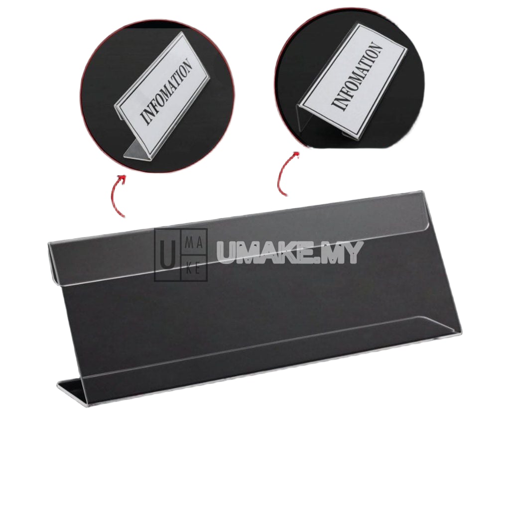 Transparent acrylic card holder for displaying name cards, price tags, menus, and event signage. Suitable for restaurants, offices, parties, weddings, and retail. Modern clean design with stable base. Multiple sizes available.