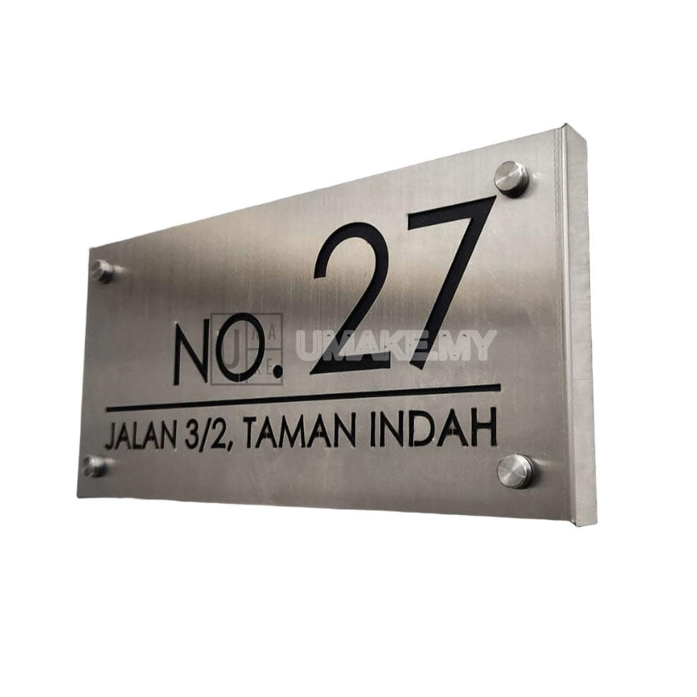 UMAKE manufactures premium stainless steel house number plates that elevate your property entrance. Each plate is custom-made with your house number, street name, and preferred design. Available in multiple sizes and finishes to complement any architectural style.