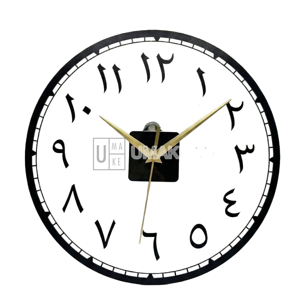 Islamic wall clock featuring Bismillah or other calligraphy design on acrylic face. Silent quartz movement with accurate timekeeping. Combines function with beautiful Islamic art for any room.