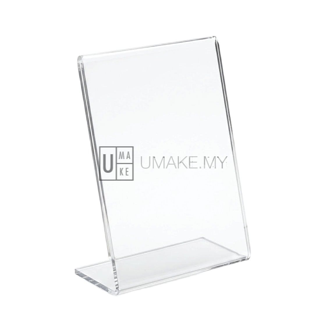 The L-Shape Acrylic Display Stand is a sleek, free-standing solution for showcasing menus, signs, and promotional content in retail, F&B, and corporate spaces across Malaysia. Made from crystal-clear acrylic, its durable 'L' design holds paper inserts at a readable angle without frames or tools. At UMAKE, we manufacture high-quality display solutions in our Balakong facility, combining precision cutting with Malaysian craftsmanship to deliver stands that elevate your branding.