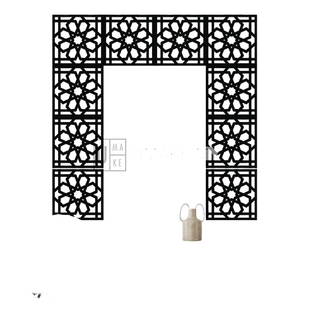 Decorative 3D Islamic mihrab wall panel with traditional kerawang (lattice) pattern. Made from glossy black acrylic (1.5mm thick), 30x30cm compact size. Ideal for surau, musolla, prayer rooms, and as a focal point in Islamic interior design.