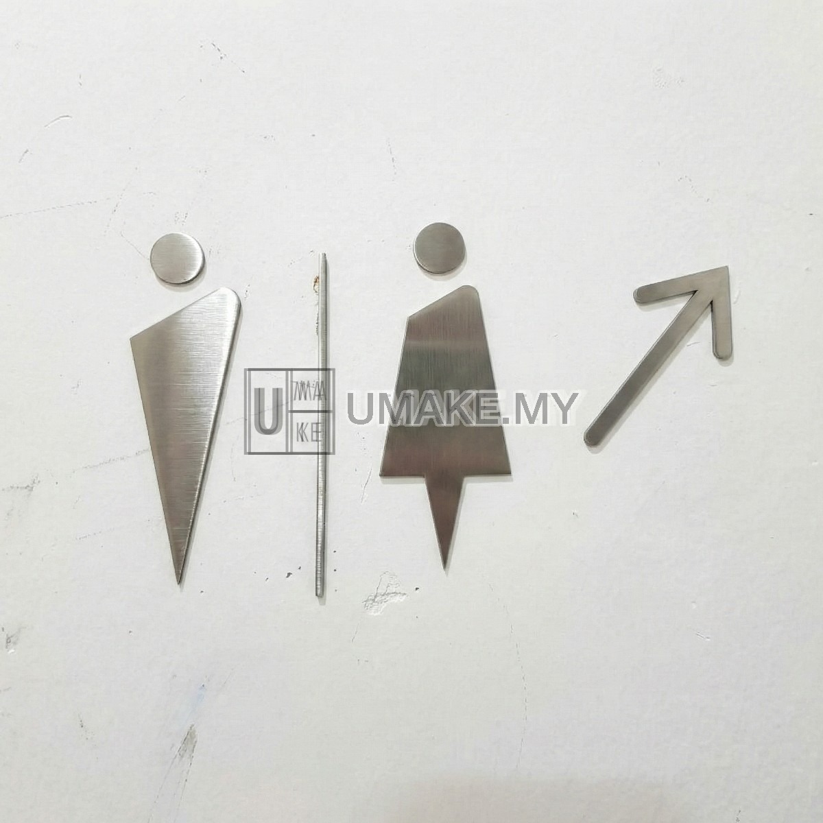 Modern stainless steel toilet direction signage with luxury finish. Trilingual design in English, Malay, and Chinese. Premium stainless steel construction for long-lasting durability. Sleek, contemporary design suits upscale offices, hotels, shopping malls, and restaurants. Easy wall mounting with included hardware.