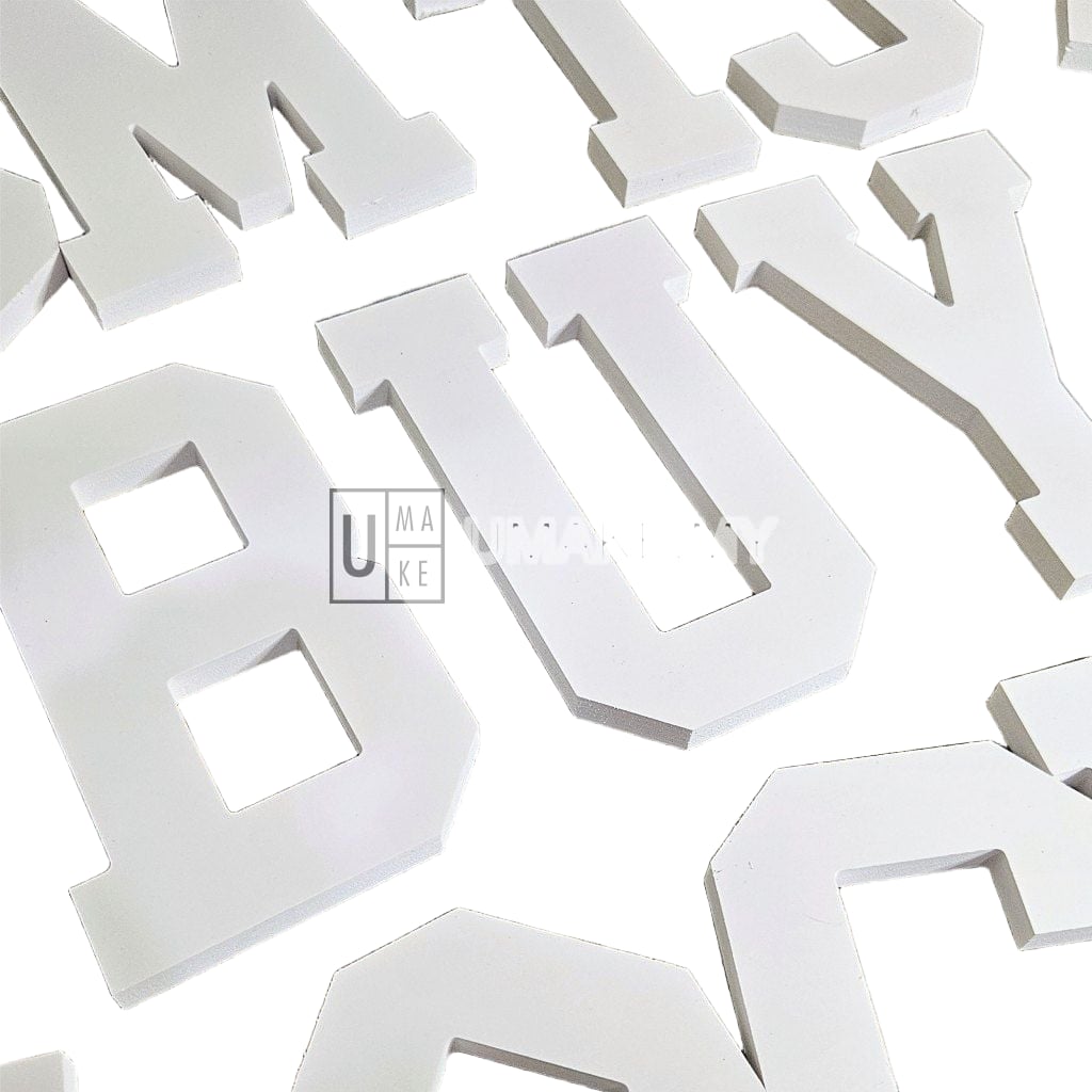 White PVC 3D alphabet letters and numbers, 8cm height and 10mm thick. Waterproof and lightweight. Perfect for home wall decor, birthday decorations, wedding signage, office wall lettering, and event displays. Sold individually — order the letters you need and specify in remarks.