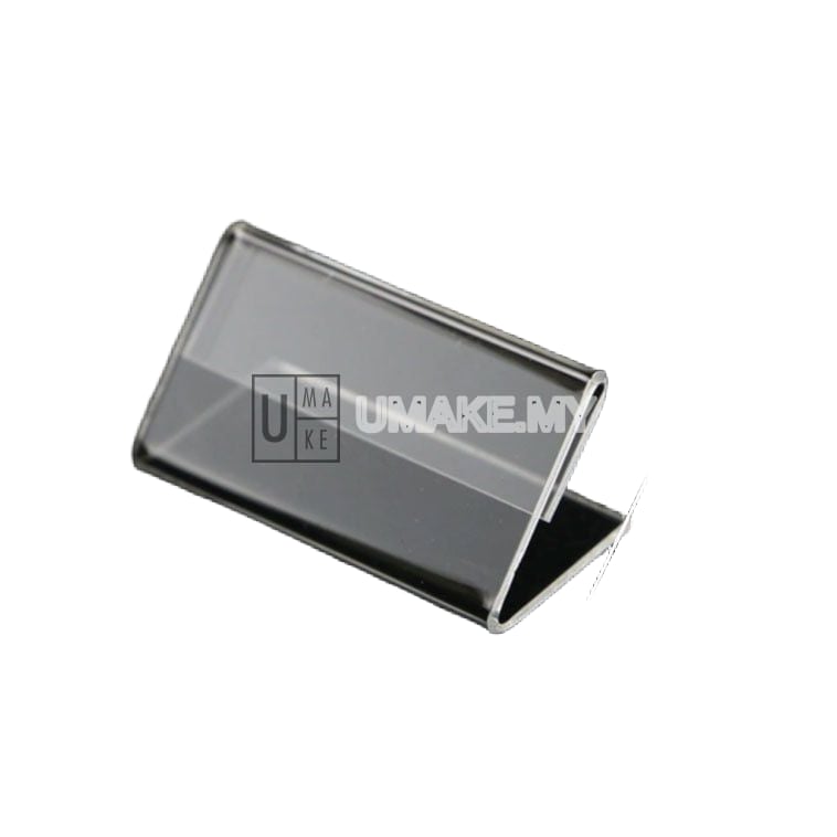Clear acrylic card stand for displaying price tags, product descriptions and name cards. Compact slot design fits standard 60mm x 40mm printed cards. High quality transparent acrylic construction that is sturdy and durable. Ideal for retail shops, exhibitions, restaurants and office desks. Simply slide your printed card into the slot for instant display.